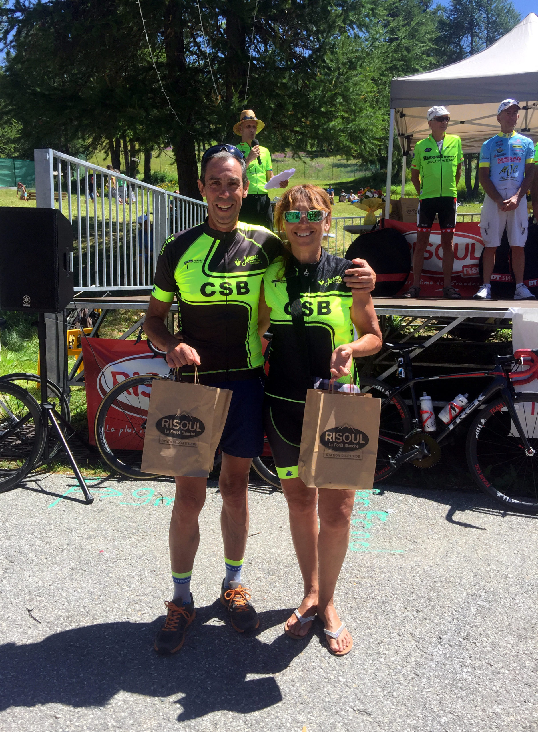 Marie-Jo et Vivian respectivement 1ère et 2ème de leur catégorie sur le petit parcours de la cyclosportive Risoul Queyras dans les Hautes-Alpes en juillet.