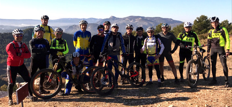 Les VTTistes au point sublime sur les crêtes de la montagne de Regagnas au dessus de La Bouilladisse lors d’une sortie VTT le samedi 18 novembre 2017.